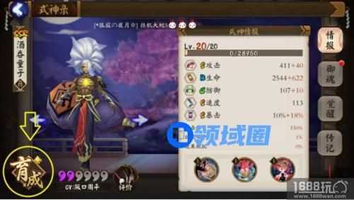 图中酒吞童子式神下方是两个勾玉,代表着这个式神星级为2星,而2星的式神的等级瓶颈是20级。