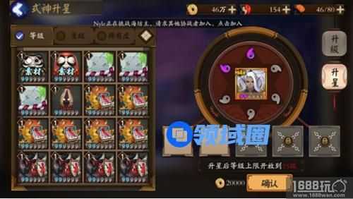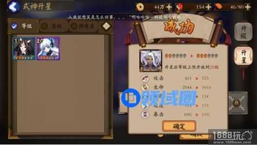 为了让我们的式神突破等级瓶颈,我们将会用到黄色箭头所指的功能,也就是升星功能,我们可以通过这个升星,给已经到达等级瓶颈的式神进行升星,但是没有达到等级瓶颈的式神却是不能够用升星这功能。通过升星这个功能,能使我们的式神变得更加强大。