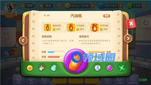 汽油瓶是持续伤害的炮塔,同时对击中目标的周围有溅射效果。