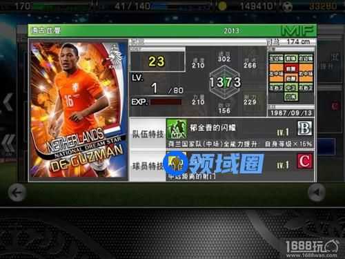 德古兹曼,荷兰小德,虽然只有23C,但是进攻高达300+,技术也有266,从数据上完爆杰拉德,技能BC配的还是远射,易极又不会飞机,可以说是出门在外必备良药,你别忘记了,他还是穿橙装的。只可惜热区太少,四星球员本来数据就低,只能放红色位置才能发挥最大效果。
