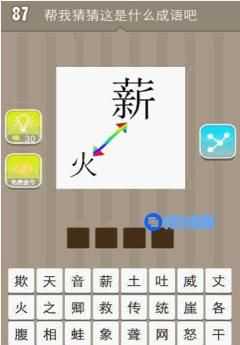 以上就是疯狂猜成语薪火的成语答案,答案中已经告诉玩家们两个字了。