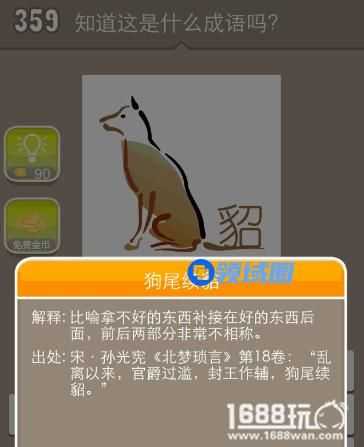答案就如图里描述的一样,狗尾续貂。这一关的难点在于很多玩家不知道这个成语。而知道这个成语的玩家往往很快就能答对。