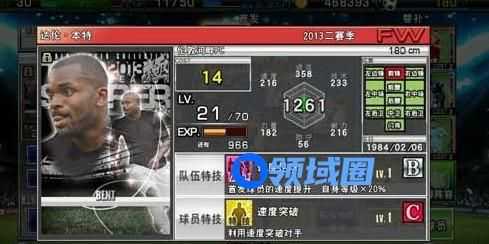 实况俱乐部的cost球探卷有机会抽出达伦本特这名球员,他拥有速度足球和速度突破2个特技,不过属性却很低,强化到21级综合属性也只有1261。这和很多没强化的4星球员,1级的属性差不多。