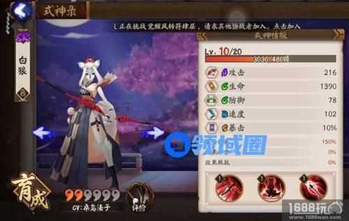 明白了这个之后,我们来看看白狼这个式神的特色。