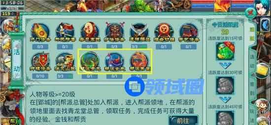 每天13:00~13:40,击杀帮派内刷出的山贼,获得大量帮贡。击杀山贼队伍中的小偷,有几率获得锦盒(上交给商人可获得10点帮贡)。