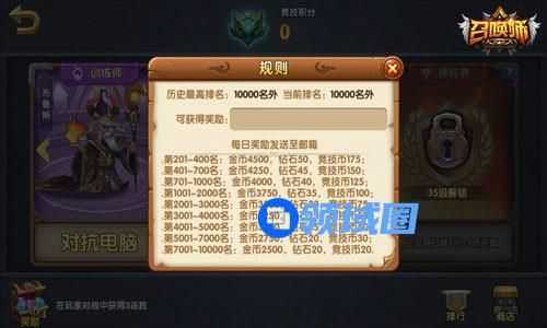 由于竞技场模式的开放需要玩家等级达到10级,建议玩家尽快去世界冒险的关卡中提升等级,尽早开放竞技场模式,只要能进入一万名以内,至少就能拿到【2500金币、20钻石、20竞技币】的保底奖励。