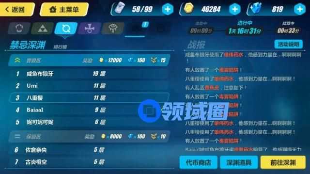 保级区奖励为0-60-100-160-240-340-480,晋级区奖励为更高层的保级区,降级区奖励为更低层的保级区,深渊越低,保级人数和晋级人数也会多一点
