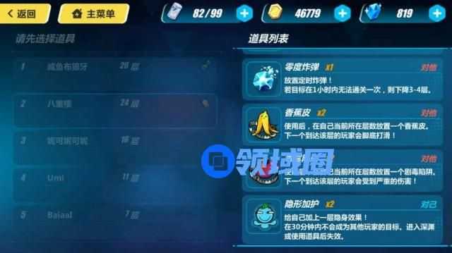 规避他人的道具,在自己休整时候用,可以持续半小时,但是使用道具或继续刷深渊会失效