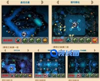 罪恶之渊共五层,分别为:盘龙古道、银月祭坛、无尽之渊、镇魔渠、天劫魔殿