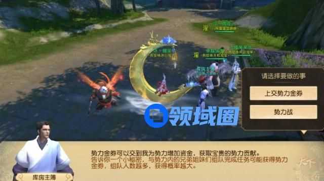 指挥安排好了,队伍也编制好了之后,我们就可以提前几分钟到势力库房主薄处等待势力战的开始了。此时势力主也可以做些战前动员,以鼓舞士气。