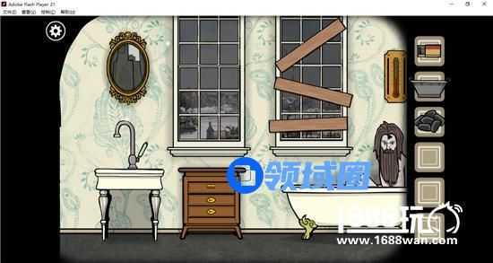 Rusty Lake Roots The Bathroom攻略。Frank被就上来后,在浴室里洗澡、取暖、理发。减去头发和胡子的他还蛮帅气的。然后他的头发被放到了罐子里...