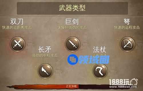 目前游戏中有:巨剑、双刀、长矛、双弩以及法杖五种武器。