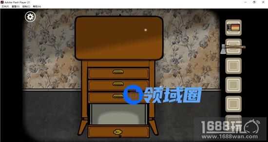 另外的墙上有一张画,画可以撕下来,得到一把钥匙,可以打开锁住的抽屉,拿到斧头
