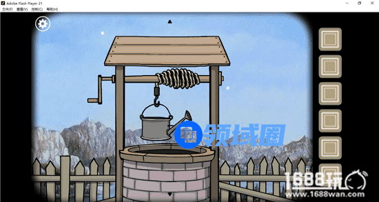 旁边有一个水壶,拿起来,挂到井上打水