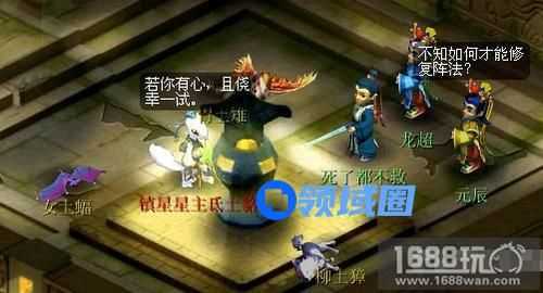 组队状态下不易躲开,建议分开来,只要有一个人躲到最后都算过关。之前被传送出去的玩家将可以通过袁天罡进入场景集合。然后挑战辰星星主参水猿。
