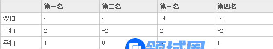 平扣:如果一方有一个第一名,一个第四名,则双方平扣。