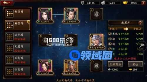最后是阵法升级,主角到达60级之后耗费银两就可以提升阵法等级,加的属性很多。当然你什么时候不想用这个阵法,却已经把它等级升的很高,那你可以花费元宝进行阵法重生。