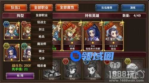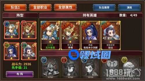 如图所示,左侧四个位置是调整英雄站位的地方,对应左上、右上、左下、右下分别是前、上、下、后。玩家可以点击下方布阵来选择你的英雄并确认位置。操作简单易上手,但是可不要小瞧这些简单的调整,这可是决定一场战斗胜负的关键哦!