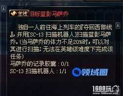 1、主线获得目标蓝影马萨乔任务,获得扫描机器人。
