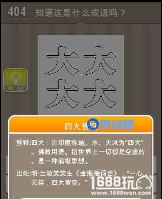 疯狂猜成语中四个大字打一成语的谜面让许多玩家都摸不着头脑,其实这一关的谜面并不难,下面小编就为大家解答一下这一关卡的答案及解析吧!