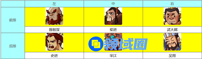此阵容中只有吴用不能进行攻击其它五位武将+上鲁大师和武大郎的追击效果一回合能打出11次攻击。。。。。。。