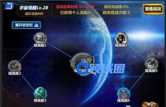 宇宙母舰是个蝴蝶形状的副本,小怪位于两边,boss在中间。这个副本的难度也在boss,boss有着相当强的攻击力,而且是全体攻击。最最最关键的是,boss暴击伤害简直爆炸,只要出一次暴击,甭管你啥神将,直接秒杀全部……所以在扫外围小怪的时候,一定要选减boss暴击伤害的buff,一定要选减boss暴击伤害的buff!(重要的事情说两遍。)