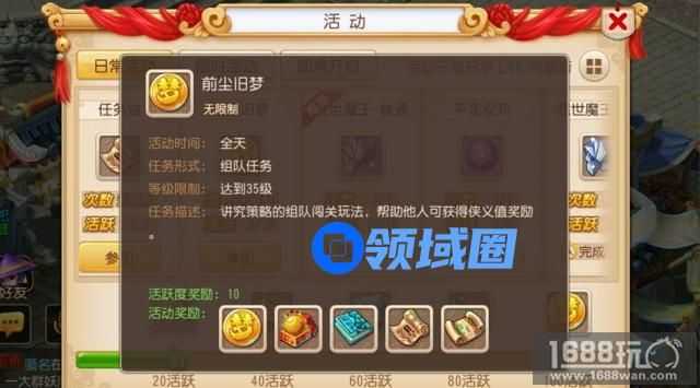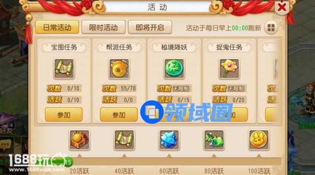 增加活跃度也可以获得活跃度奖励,每天活跃度满20就可以获得1个九转金丹。