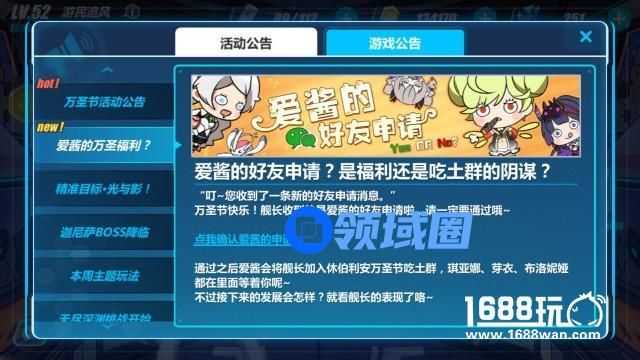 进入游戏点击活动,在爱酱的万圣福利点击那个蓝色的爱酱的申请