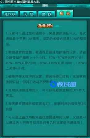 当然,上边也说过,《女神西游》是个快意恩仇的世界,正所谓人在江湖漂,哪有不挨刀。在游戏里,你难免会和他人结怨,或许也会被人通缉,被满世界的人追着杀,被关入天狱之中,尝受牢狱之苦。这时候,也别急着骂娘,有钱能使鬼推磨,只需花费相当于悬赏金额150%的费用即可直接出狱。在这里,也告诉大家一个省钱的技巧,当你在天狱服刑时,别急着花钱打花出狱(当然除非你是土豪),入狱时间为4小时,先估算一下金额,这4小时之内,是否能获得足够多的收益。另外,也估算下自己的上线时间,因为上线时间获得的收益肯定比下线挂机要强,所以入狱后的接下来4个小时内没有上线的打算,你大可在牢狱中度过,若是有上线的打算,你再考虑下费用问题。