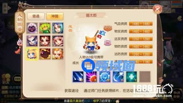 虽然是魔兽,但是由于是做师门累计石头送的,所以在资质上面并不占便宜。但是技能来说还是非常不错的,