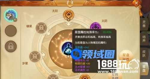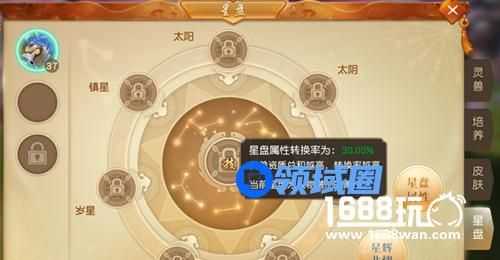 灵兽星盘的属性转换率最高可达到40%的星盘属性加成给人物!