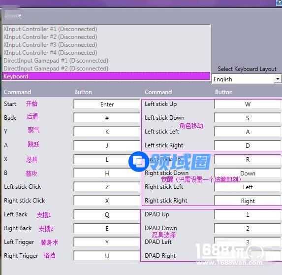 键位设置,进到游戏根目录找到【NS3FB_launcher.exe】进行设置,按键设置翻译如下图
