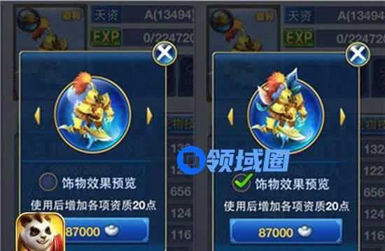每种宠物都有一件与其对应的饰物。宠物戴上饰物后,不仅外观变得漂亮,各项资质上限还能得到一定提高。