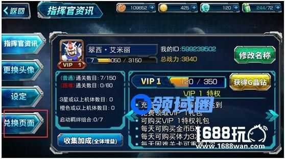 2.在指挥官资讯界面,单击左下角“兑换页面”按钮;