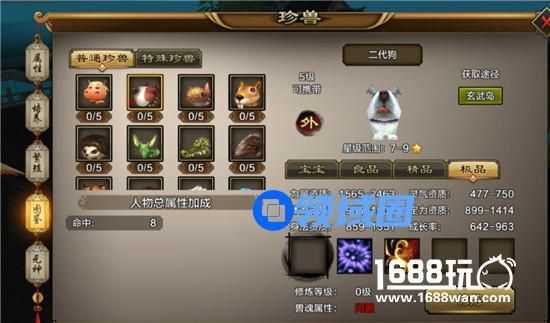 珍兽图鉴里面我们可以看见所有珍兽的获取途径和各个星级珍兽的资质。另外还可以用珍兽的兽魂来增加人物的属性。