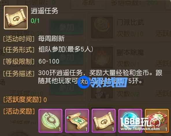 除此之外,逍遥任务是一周更新一次的。当我们升上60级,完成日常任务可能会获得一些多余的日钻和六爻石,我们可以积累平时下本获得的这些材料去交逍遥任务。这也在一定程度上为我们处理了部分材料。