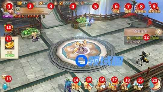 游戏最基础的信息就在主界面的左上角,记得要时刻关注喔,因为它们关系着你的角色主城显示形象、英雄培养等级上限、进入副本次数、PVP次数等。