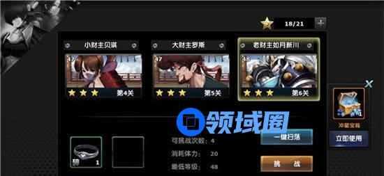 右下角打开菜单,选择“挑战”,可以在里面看到“宝物抢夺”副本入口,点击后进入副本界面可以看到很多关卡,第一次挑战会从第一关开始挑战,然后依次挑战更高层次的关卡。