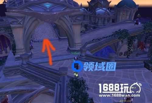 首先来到下图小地图所示的地方,坐标46.6 76.7,你会在桥上看见一个上去的楼梯,伪装了再上去,还有一段天桥要走。