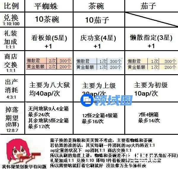 关茶碗和茄子的刷法,如果你能做到6礼装的话按34L说的刷效率最高。