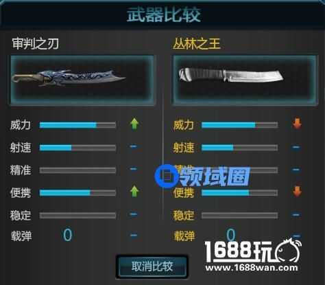我们和普通的大砍刀丛林之王对比,我们从明面数据上就能发现,审判之刃在伤害和便携性上都高出不少,而且外观特效更不是一个层面。