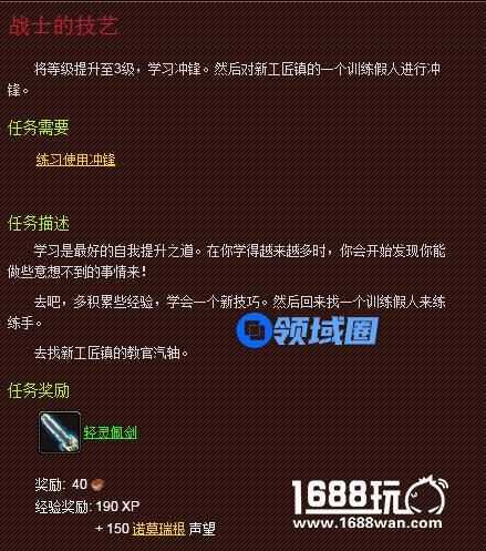 如上图,3级侏儒战士的职业任务——战士的技艺,任务完成后的奖励就是轻灵佩剑。