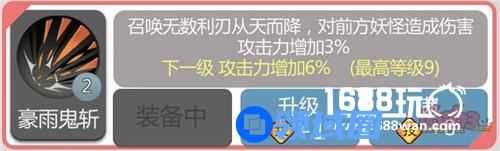 豪雨鬼斩:腾跃空中,召唤剑雨。重点:在空中时,貌似!貌似!是无敌的!不会被击中!准确的说应该是“100%闪避”。并且击倒目标。