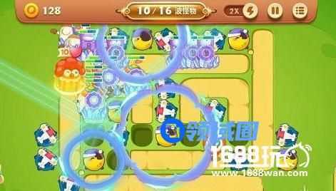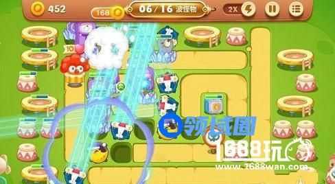 上图就是这关的地图,这关我们要注意前中期炮塔的位置,选择飞机输出,月亮减速。