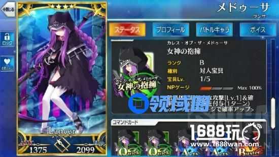 宝具:敌单体超强力攻击(随宝具等级提升) 概率晕一回合(OC概率上升)