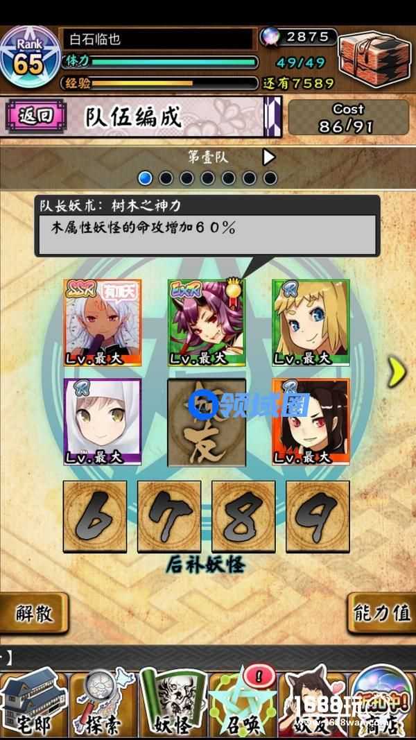 4.有种族与属性复合属性的队长也非常推荐,配队上更自由。在这边先给新手们一个观念,你可以先把你最爱的妖怪给抽起来放着,但是能组成什么队伍是要看最终持有妖怪来决定的,所以找个高等的好妖友帮忙努力升Rank等级,累积奖励灵玉在限定属性种族或节庆的召唤祭上,SSR以上机率大幅提升时拚自己想要的妖怪,有另一方式是把握每次开放的奇谭收集自己想要的队员慢慢茁壮,本游戏即使无课金只要花时间练等及打巡行、奇谭、成长谭就可以玩的很强。