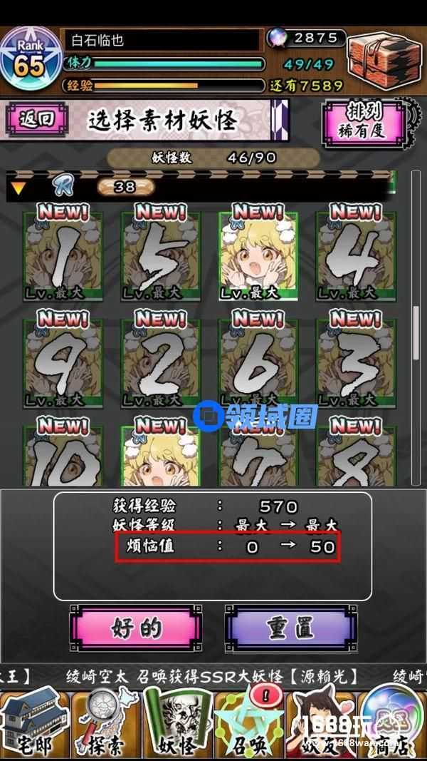 烦恼值是《妖怪百姬》一个非常独特的设定,每一位妖怪美少女都会有“烦恼”,但这里的烦恼并非负面状态,烦恼值越高,妖怪的状态就提升的越多唷。所以,妖友们要想办法提升妖怪们的烦恼值。相同妖怪合魂时会增加「烦恼值」。