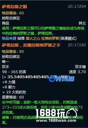 对萨弗隆战锤使用萨弗拉斯之眼,就能得到“萨弗拉斯,炎魔拉格纳罗斯之手”。