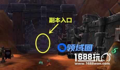德拉诺戈尔德隆,坐标(56,33),附近有两面旗帜。转头,集合石在你右手边的时候,向前走,进去右拐,就可以看到副本的入口了。