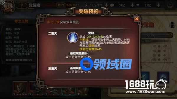 觉醒材料可以提升英雄们的觉醒等级,提升一定的基础属性。当英雄的觉醒等级提升到一定程度时,就可以突破自身的瓶颈,达到新的天地,这称为九重天。英雄每突破一重天都会获得强大的属性加成并可能解锁超强特性。
